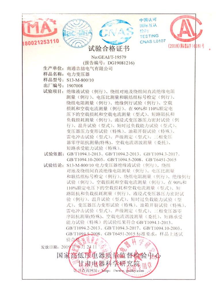 试验合格证书